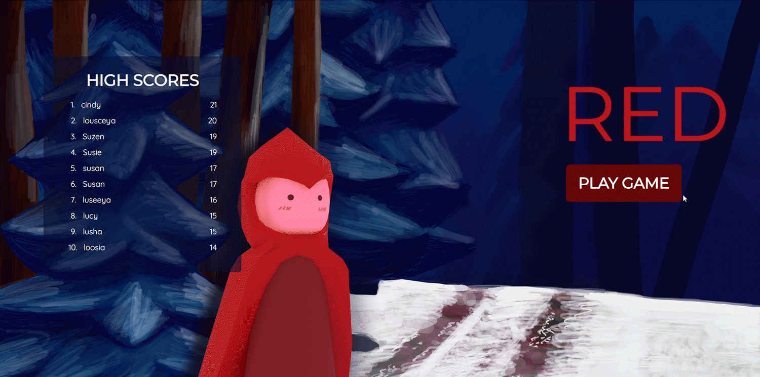 This app is a simple endless runner game built using JavaScript's three.js library. The user plays as a Little Red Riding Hood character sledding through the woods, using the left and right arrows to avoid trees and the spacebar to jump over rocks. The opening page contains a highscore chart that is maintained using MongoDB.