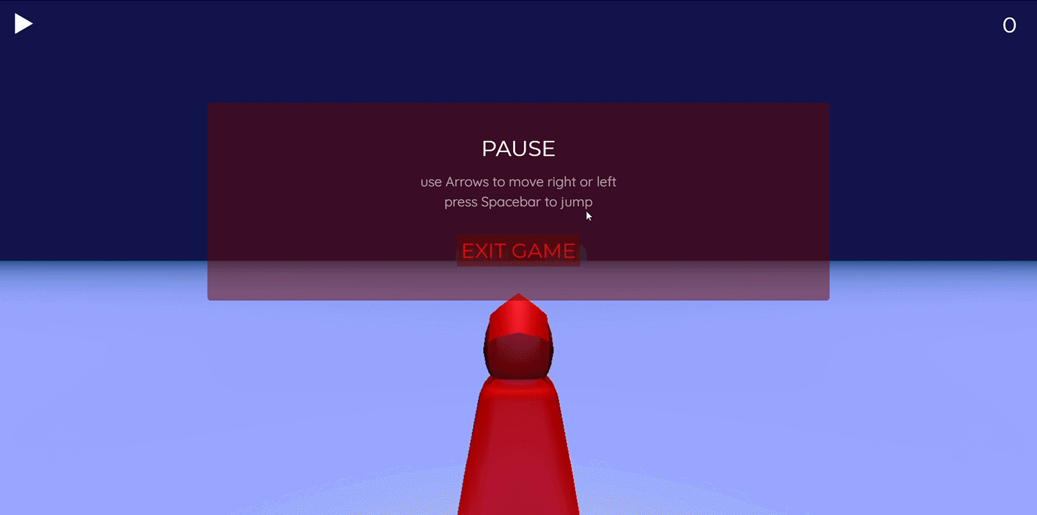 At any point in the game, the user can pause the game and exit, or press the play button to continue.